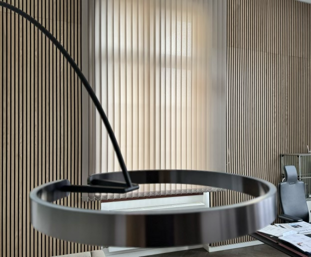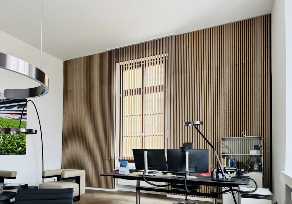 Ruhe und Eleganz – maßgefertigte Akustikwand für moderne Arbeitswelten