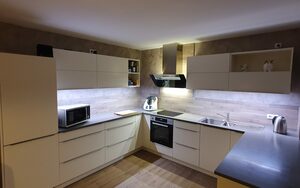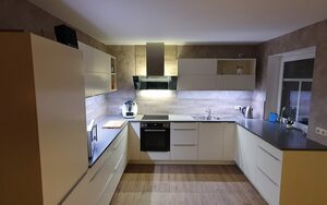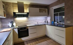 Diese Küche wurde z.B. komplett renoviert und alle Küchenmöbel und die Arbeitsplatte wurden individuell abgestimmt und hergestellt durch das Team der Tischlerei Brand.