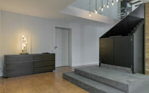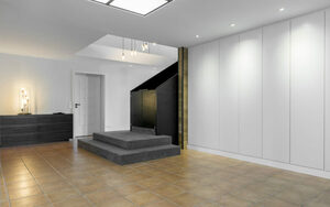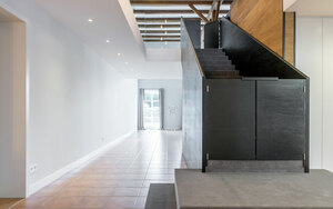 Hier hat die Tischlerei Brand nach Maßgabe des Architekten eine neue Treppenanlage mit Kindersicherung erstellt, inkl. dem Podest dazu. Außerdem einen Einbauschrank mit hochwertig lackierten Türen, farblich abgestimmt mit push to open- Mechanik.